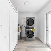 This 2026 total renovation features a brand new kitchen with quartz counter tops, stylish cabinets and brand-new premium appliances. Renovated designer bathrooms for every bedroom, and new high-end flooring throughout. The laundry room features new full size front-load washer and dryer.