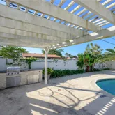 Your private backyard resort boasts a sparkling pool, a summer kitchen, and a deep covered terrace for year-round al-fresco dining. Park your RV & Boat inside the fenced in over-sized side yard.