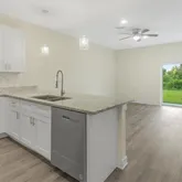 9' ceiling open floor plan connects the kitchen to the living areas. The kitchen features granite countertops, light and bright shaker-style cabinets, stainless steel appliances, and modern fixtures, giving the home a contemporary and functional space for cooking and entertaining. The home features hurricane-impact windows and sits high in a non-flood zone. This home is conveniently located near world-class beaches, several golf courses, easy access to boat ramps, shopping, great restaurants, and several state parks. A 675 or better credit score will allow you a move-in cost of 1st month's rent and security deposit; otherwise, 1st month, last month, and security deposit will be required to move in.