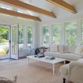 Upon entering, you're greeted by a sunlit breakfast nook in a well-appointed kitchen, an inviting space ideal for morning coffee. The formal dining and living rooms exude elegance, seamlessly leading to a show-stopping four-season sunroom. This versatile space, perfect for meditation, yoga, or enjoying a good book, opens directly to the in-ground pool, outdoor shower, and beautifully landscaped grounds. A primary suite with en-suite full bathroom and a home office area bring the first floor to a next level.