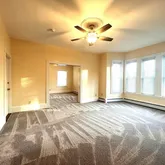 - Room Living Room Features: Ceiling Fan(s),Flooring - Wall to Wall Carpet,Window(s) - Bay/Bow/Box,Pocket Door