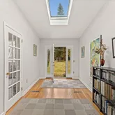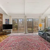 - Public Remarks: Tucked away down a quiet mid-country lane, surrounded by pretty woodlands, is this modern styled one level home with 3 bedroom septic. Large open reception hall, large living room with fireplace, high ceilings, study/office area, and large formal south-facing dining room with oversized windows that overlook the front yard and lovely mature trees. A step down from the dining room through French doors is a very large open island kitchen with oversized windows that stream in abundant southern and eastern natural light. Two family bedrooms were combined into one in recent years. Potential new primary in the living-family room. Off the back of the home are large sliders that overlook the deck area and rear yard. Central AC, combination heating, 2-car garage.