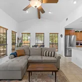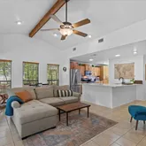 - Interior Features: Beamed Ceilings, Open Beams Beamed Ceailings, Ceiling Fan(s), Main Level Master, Open Floorplan, Quartz Counters