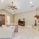 - Fireplace Features: Stone, Wood Burning
