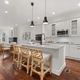 Step inside and feel instantly at home. The open main level features 10-foot ceilings, rich birch chestnut hardwood floors, and an inviting gas fireplace that creates the perfect setting for cozy nights in. The spacious living and dining areas flow seamlessly into a sun-filled kitchen, complete with GE appliances, an oversized island, and ample cabinetry (including a full pantry). Whether you’re hosting dinner with friends or making Sunday pancakes, this kitchen is the heart of the home.