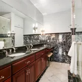 - Room Description: Gorgeous marble wainscoting & shower, double sinks, vanity area, Kohler fixtures