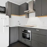 - Appliances: BuiltInOven, ConvectionOven, ElectricCooktop, ElectricRange, Disposal, Microwave, Refrigerator, SeeRemarks