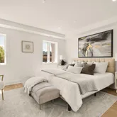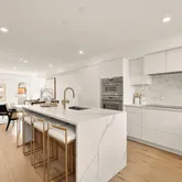 Each residence showcases refined modern design and premium finishes throughout. The chef’s kitchen is appointed with professional-grade Thermador appliances, custom cabinetry, and sleek surfaces designed for both everyday living and entertaining. Wide-plank white oak flooring extends throughout the home, complemented by imported porcelain accents that elevate the overall aesthetic.