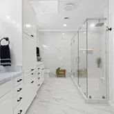 - BATH DESCRIPTION: Shower Only, Shower/Tub, Separate Lavatories, Walk-In Closet, Ceramic Tile, Marble