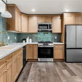- Room Kitchen Features: Kitchen Island, Pots & Pan Drawers, Quartz Counters, Remodeled Kitchen, Self-closing cabinet doors, Self-closing drawers, Stone Counters, Tile Counters, Utility sink