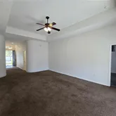 - Interior Features: Ceiling Fan(s), High Ceilings, Primary Bedroom Main Floor, Solid Surface Counters, Split Bedroom, Thermostat, Tray Ceiling(s), Walk-In Closet(s), Window Treatments