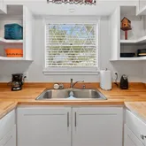 •Stylish butcher block countertops in the kitchen