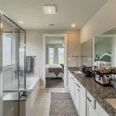 - Interior Features: Breakfast Bar, Double Vanity, Entrance Foyer, High Ceilings, Kitchen Island, Kitchen Family Room Combo, Pantry, Quartz Counters, Soaking Tub, Separate Shower, Tub Shower, Vanity, Walk In Pantry, Ceiling Fans, Programmable Thermostat