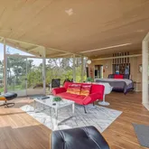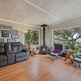 - Fireplace Features: Stone, Wood Stove