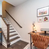 This home includes open space living on the main floor. A spacious, bright dining area with plenty of room to entertain and a kitchen that is a chef's delight. Enjoy the huge island that seats up to 6 and includes a double stainless steel sink and a new dishwasher and is surrounded by plenty of cabinets for storage, a gas range and a convenient pantry closet. The living room is large and comfortable, leads out to a maintenance-free deck with a view overlooking mature trees. There is a space for two desk areas on this floor and a roomy half bath completes this floor plan.