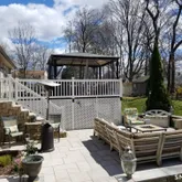 - Exterior Features: Sidewalk, Shed, Deck, Gutters, Garden Area, Lighting, Stone Wall, Patio