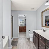 - Interior Features: TrayCeilings, CeilingFans, CofferedCeilings, SeparateFormalDiningRoom, DoubleVanity, EntranceFoyer, EatInKitchen, GraniteCounters, GardenTubRomanTub, KitchenIsland, SeparateShower, WalkInClosets, WindowTreatments