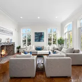 The home features 5 bedrooms and 4.5 bathrooms, with an ideal layout offering four bedrooms on the main level, including a gracious primary suite with a fireplace and private ambiance. An additional bedroom upstairs offers flexibility for guests, or a home office.