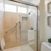 - Bathroom: Full on Ground Floor, Primary - Stall Shower(s), Shower over Tub - 1, Stone, Tile