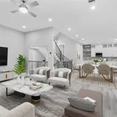 - Interior Features: Breakfast Bar, Balcony, Double Vanity, Entrance Foyer, High Ceilings, Jetted Tub, Kitchen Island, Kitchen Family Room Combo, Bath In Primary Bedroom, Pots And Pan Drawers, Pantry, Quartz Counters, Self Closing Cabinet Doors, Self Closing Drawers, Separate Shower, Tub Shower, Vanity, Walk In Pantry, Ceiling Fans, Kitchen/Dining Combo, Programmable Thermostat