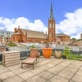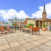 Residents can indulge in a variety of luxury amenities, including a full gym and a common media/recreation room. Enjoy gatherings on the community rooftop terrace, where panoramic city skyline views create an enchanting backdrop. For those seeking outdoor activities, a basketball court and common outdoor space are available.