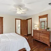 The interior is designed for a practical rural lifestyle, beginning with a cozy foyer that leads into a home featuring a neutral palette and hardwood floors throughout the main level. To your left, a spacious living room with a cozy fireplace provides a comfortable retreat, while the kitchen and dining area offer a straightforward layout for daily life. The main floor is built for flexibility, featuring a guest bedroom and full bath, alongside an oversized mudroom and laundry suite that serves as a dedicated organizational hub. The second level includes a primary suite designed as a private sanctuary with its own ensuite bath, an additional bedroom, a full hallway bath, and a cozy bonus room perfect for reflection or relaxation.