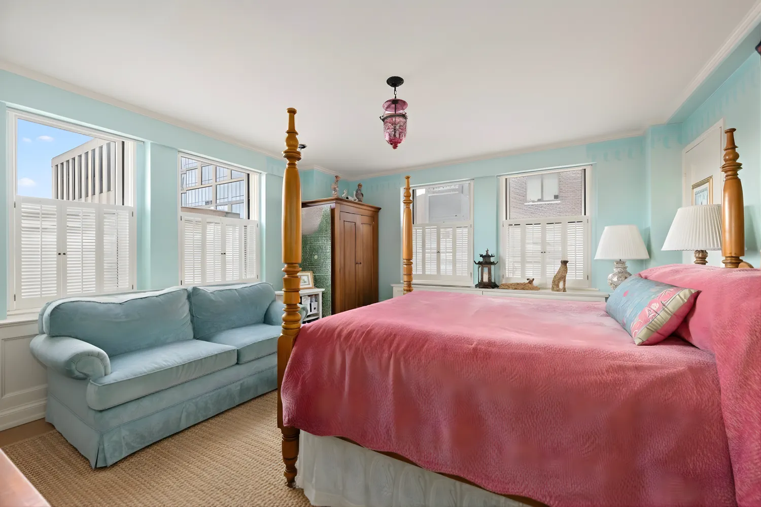 This magnificent home features through-the-wall air conditioning, period-appropriate moldings, pristine solid wood floors, recessed lighting, and an abundance of storage with 14 closets throughout.