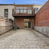 Inside the home, is an expansive open floor plan with soaring ceilings, exposed brick, and a chef’s kitchen featuring a wine-chiller island and professional-grade appliances. Upstairs is a light filled Primary suite, a second bedroom and an office/third bedroom with professional, recording studio-grade soundproofing. Retreat to your private rear courtyard or the primary suite’s balcony for a breath of fresh air.
