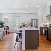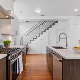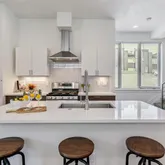 - Room Description: Chef's Kitchen complete with island/breakfast bar, Quartz counters, tile backsplash and stainless appliances - gas range