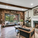 - Living Room: Dec Molding, Floor - Wood, Fireplace - Woodburning