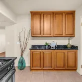 - Kitchen: Countertop - Granite, Exhaust Fan, Hood Over Range, Oven Range - Gas, Refrigerator