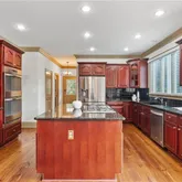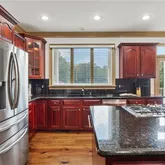 - Kitchen Features: Breakfast Bar, Breakfast Room, Cabinets Stain, Kitchen Island, Pantry Walk-In, Solid Surface Counters, View to Family Room, Wine Rack