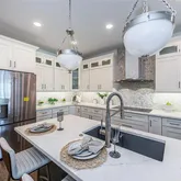 - Interior Features: Ceiling Fan(s), Crown Molding, Eating Space In Kitchen, Elevator, High Ceilings, Kitchen/Family Room Combo, Living Room/Dining Room Combo, Open Floorplan, PrimaryBedroom Upstairs, Solid Surface Counters, Solid Wood Cabinets, Split Bedroom, Stone Counters, Thermostat, Tray Ceiling(s), Vaulted Ceiling(s), Walk-In Closet(s)