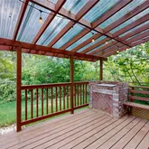 - Exterior: Stone, Wood Products