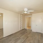 Walk into the living room, then on the right is the 2nd living area, both living areas have the wood looking tile flooring, straight back will take you into the spacious kitchen/dining combo, the master has the 1/2 bath, all bedrooms and kitchen dining areas are tiled. ceiling fans, Utility Room, and good size backyard