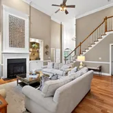 - Interior Features: Bar, Bathtub/Shower Combination, Bookcases, Breakfast Bar, Built-in Features, Cathedral Ceiling(s), Ceiling Fan(s), Chandelier, Crown Molding, Dual Closets, Eat-in Kitchen, Entrance Foyer, Granite Counters, High Ceilings, High Speed Internet, Kitchen Island, Kitchen/Dining Room Combination, Pantry, Master Downstairs, Quartz Counters, Radon Mitigation, Separate Shower, Smooth Ceilings, Soaking Tub, Tray Ceiling(s), Vaulted Ceiling(s), Walk-In Shower, Water Closet