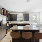 - Interior Features: Eating Space In Kitchen, High Ceilings, Kitchen/Family Room Combo, Open Floorplan, PrimaryBedroom Upstairs, Stone Counters