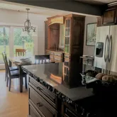 - Kitchen: Center Island,Custom Cabinetry,Solid Surface Counter