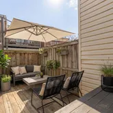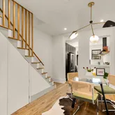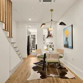 Inside, warm oak hardwood floors and painted brick accents create inviting contrast throughout the updated interior. The semi-open floor plan offers flexible space to relax, work, and dine with an easy, natural flow. The renovated kitchen is designed for both everyday living and entertaining, featuring GE Café black stainless...Tucked behind a spacious, fenced front yard just one block from the Metro, this stylish 2-bedroom, 1-bath townhouse blends historic Capitol Hill charm with thoughtful modern updates.