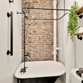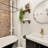 Upstairs, two light-filled bedrooms provide comfortable retreats. The updated bath showcases exposed brick, a clawfoot tub, and an automated skylight/vent for added light and ventilation. Major systems were thoughtfully updated in 2020, including the tankless water heater, combination washer/dryer, and Mitsubishi mini-split systems. Truly amazing fenced-in outdoor spaces in front and back perfect for entertaining, lounging, and pets. Just a few short blocks from pet-friendly congressional cemetery.