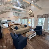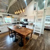 1,250± sq ft | 2BR / 2BA + loft Built in 2022 - low maintenance, newer construction Vaulted ceilings with tin + exposed beams Open floor plan with kitchen flowing into living area Kitchen features oversized island, gas cooktop, stainless appliances, dishwasher & fridge Windows across the front bring in natural light + lake views Loft space accessed by ladder - perfect for extra sleeping or flex space Washer/dryer located in second bathroom