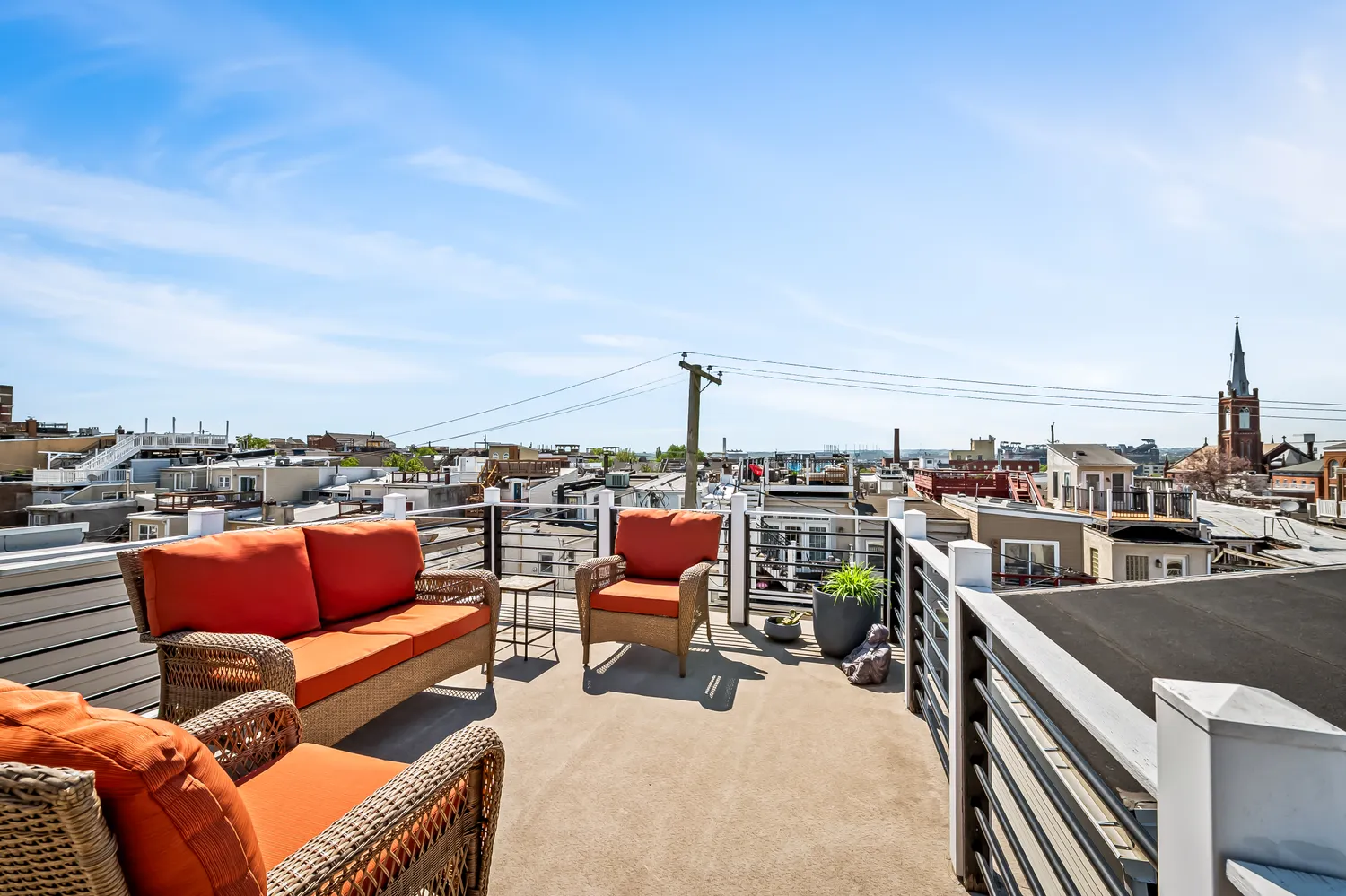 Outdoor living reaches its peak on the spacious rooftop deck made for entertaining and unwinding with sweeping panoramic city views that hit differently at sunset.