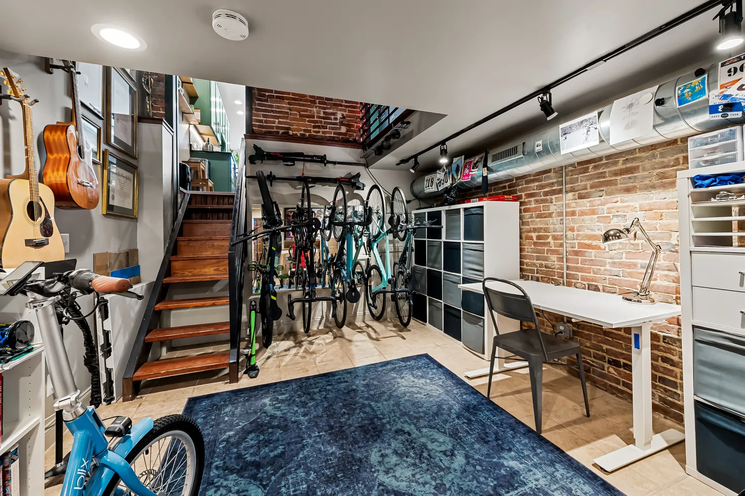 Originally reimagined by New Renaissance Architects and Builders, this 4-bedroom, 2.5-bath home is defined by its exposed brick walls, floating steel staircase, and dramatic industrial ductwork, creating a truly one-of-a-kind interior aesthetic. The main living space is both warm and contemporary,