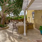 - Supplement: A gorgeous double-sided gas-burning fireplace welcomes you as you enter the home, visible from both the dining room and the living room areas. Enjoy soaring ceilings in the main living area and tons of natural light. This home offers three spacious bedrooms and an open loft area, perfect for a home office or guest accommodations. The master bedroom has an ensuite bathroom complete with two closets, dual vanity, a large soaking tub and a glass enclosed shower stall. The backyard is an entertainer’s paradise, with lush landscaping, a wood burning fireplace, built-in BBQ and a heated outdoor shower. Enjoy the ocean breeze under the shade of the breathtaking mature Brazilian Peppertree surrounded by a variety of succulents. Laundry is no longer a chore in the home’s laundry room, complete with Samsung washer and dryer. Enjoy gorgeous pecan hardwood flooring throughout the home and wood plantation shutters.