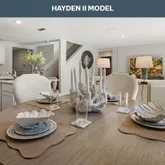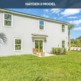 - Public Remarks: The Hayden II is a spacious and thoughtfully designed two-story home offering approximately 2,499 square feet of flexible living space with five bedrooms, three full bathrooms, and a two-car garage, making it an excellent choice for growing or multi-generational households. As you enter the home, you are welcomed by a bright front den that works beautifully as a home office, study, or quiet sitting area. The main living space opens into a generous gathering room that connects seamlessly to the dining nook and kitchen, creating an ideal layout for both daily life and entertaining. The kitchen is designed as the center of the home, featuring a large island that provides plenty of room for meal preparation, casual dining, and gathering with family and guests. A private bedroom and full bathroom on the first floor offer a convenient space for overnight visitors or a dedicated workspace.