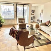Step onto classic parquet floors that lead you through open and airy living and dining spaces. The apartment has been well-cared for and offers an updated kitchen with stone countertops, ceramic flooring and gas cooking. The lovely bath offers a shower tub and updated tiling throughout. A large balcony overlooking a landscaped courtyard extends your living space -- ideal for morning coffee, soaking in the southern exposure, or enjoying sunset drinks.