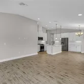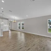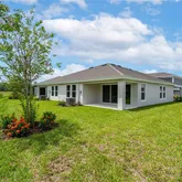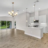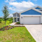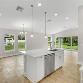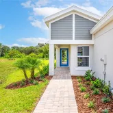 Enjoy the charm of this nearly new villa, nestled within the Crosswind Point community an enclave of 230 resort-style homes. The brand new Community Amenity Center comes complete with a refreshing pool . Strolling the neighborhood, you will encounter pocket parks and a playground. You will also find several water and nature views throughout. Step into a world of contemporary luxury with the elegantly crafted "The BridgePort" design, where every detail has been thoughtfully curated and offers over 1,500 sq ft of living. This home comes complete with 3 bedrooms, 2 baths, 2 car garage, and laundry room with washer and dryer. Beautiful quartz countertops in the kitchen are the main attraction and the blonde wood tile flooring adds an air of sophistication to the aesthetic of the home. Tall, vaulted ceilings create an airy and spacious ambiance, and a covered lanai offers the perfect space to unwind and connect with nature. EXTERIOR/PARKING: