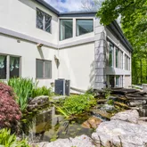 A Hidden Sanctuary in the Heart of West Carmel-Tucked away on 1.47 breathtaking wooded acres along the tranquil banks of Williams Creek, this private contemporary estate is a rare gem in one of Carmel's most sought-after locations. From the moment you enter the long, tree-lined circular driveway, the estate begins to reveal its extraordinary character-blending modern comforts with timeless craftsmanship and offering a true retreat in the woods. This spacious home features 5 bedrooms and 3.5 bathrooms,...A Hidden Sanctuary in the Heart of West Carmel-Tucked away on 1.47 breathtaking wooded acres along the tranquil banks of Williams Creek, this private contemporary estate is a rare gem in one of Carmel's most sought-after locations. From the moment you enter the long, tree-lined circular driveway, the estate begins to reveal its extraordinary character-blending modern comforts with timeless craftsmanship and offering a true retreat in the woods. This spacious home features 5 bedrooms and 3.5 bathrooms, thoughtfully designed for both comfort and functionality. At the heart of the home is a stunning indoor pool oasis and a large family room, perfect for year-round enjoyment and entertaining. The wrap-around porch leads to a private sunroom overlooking the peaceful creek, creating a serene space to relax and unwind. The front garden patio welcomes you to the main entrance, while the rear of the home features a koi pond with a tranquil waterfall. A standout feature is the expansive 56' x 48' pole building, which includes a heated garage and an 800+ square foot air-conditioned studio-ideal for creative or professional use. Inside, the home offers over 7,000 square feet of finished living space. The kitchen has been completely remodeled with custom maple and walnut cabinetry, upgraded appliances, and new flooring in the breakfast and dining areas. The basement level includes a newly added kitchen and a remodeled bathroom. New carpet has also been installed in the bedrooms and family room. This exceptional property combines privacy, space, and comfort in an idyllic natural setting-making it a truly one-of-a-kind opportunity in West Carmel.