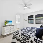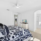 Retreat to the owner’s suite, complete with a generous walk-in closet, dual vanities, a private water closet, a tiled walk-in shower, and a relaxing soaking tub. Two guest bedrooms share a full guest bathroom, providing comfortable accommodations for family and visitors.