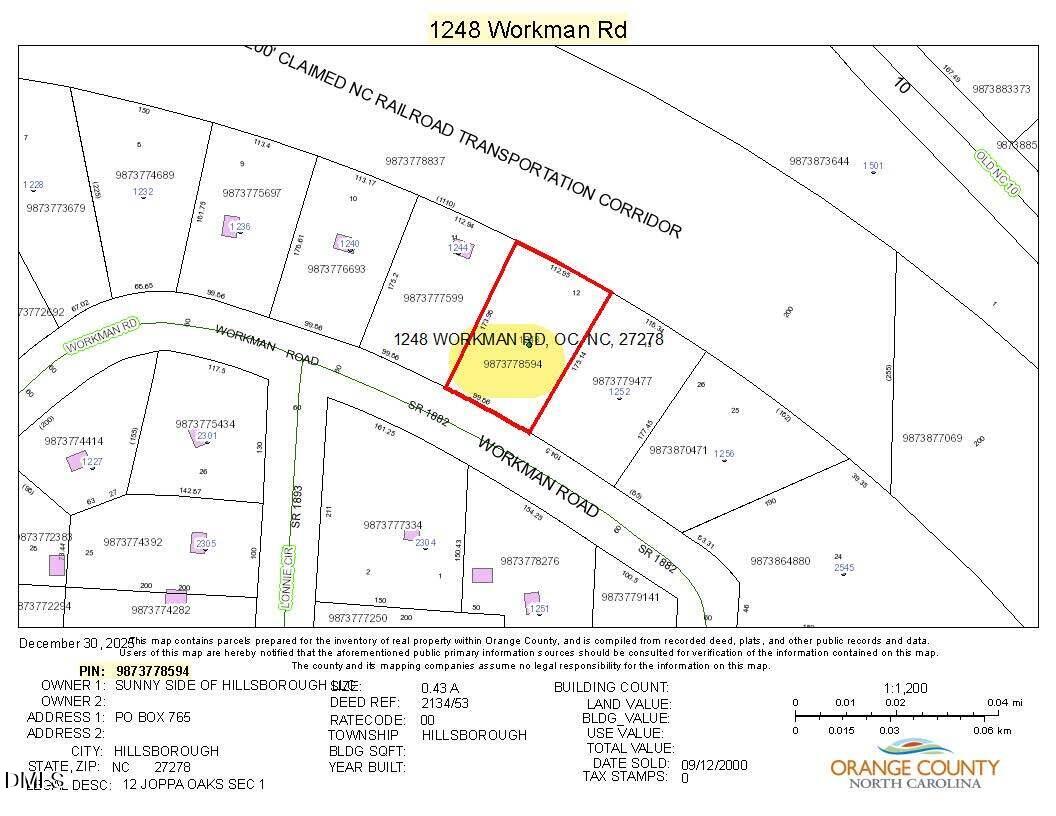 - Directions: From Hillsborough, take Hwy 86 south and turn into Joppa Oaks via Workman Rd. Go just beyond 1244 Workman Rd and this vacant lot will be on the left side of Workman Rd.
